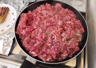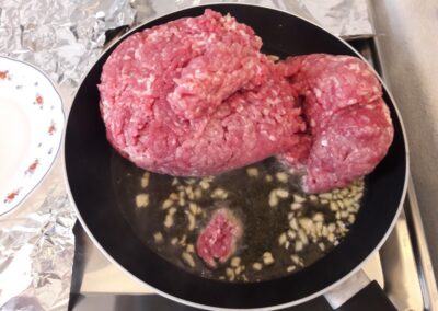 - Cuando el ajo empieza a estar dorado le añadimos la carne picada.