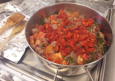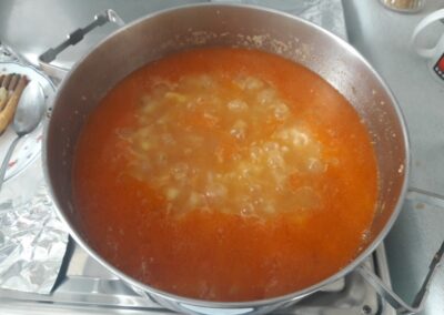 17. Dejamos cocinar la salsa, hay que estar pendientes de ir añadiendo agua si es necesario.