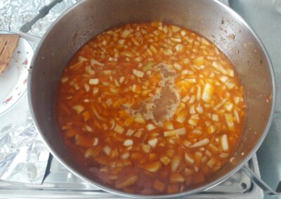15. Rellenamos de agua, hasta unos tres centímetros por encima del fondo de la pota y dejamos que se vaya cocinando y espesando.