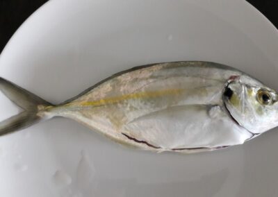 - 1 Besugo, Lubina, Sargo, Merluza o Etc. En mi caso es un pez, de unos 20 o 25 cm. que había pescado en Australia llamado Trevallies, la carne es muy parecida a la del atún.