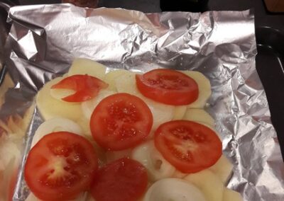- Las extendemos en el fondo del papel Aluminio sobre el aceite.