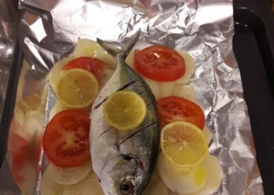 - Rociamos el pescado con un poco de aceite de Oliva.