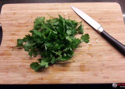 - Picamos el perejil en trozos y lo añadimos también al mortero.