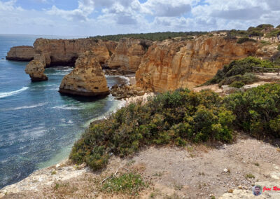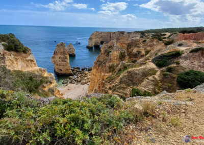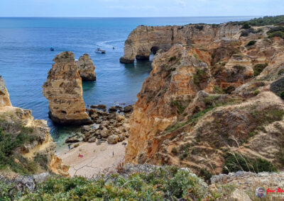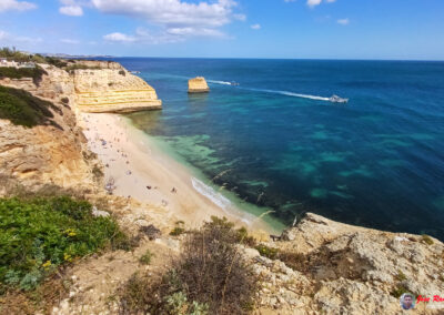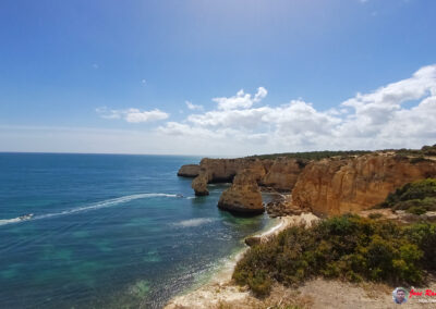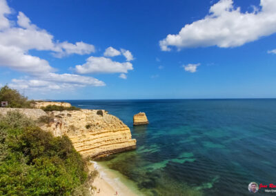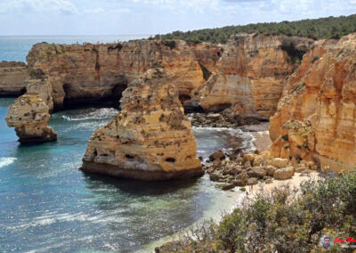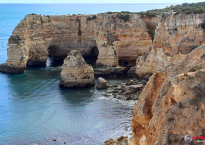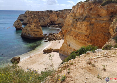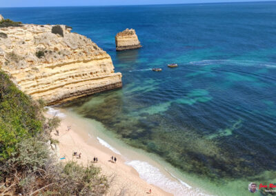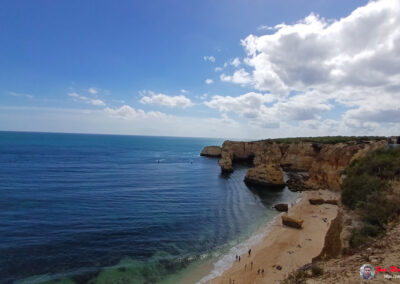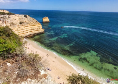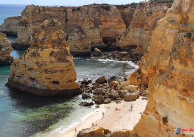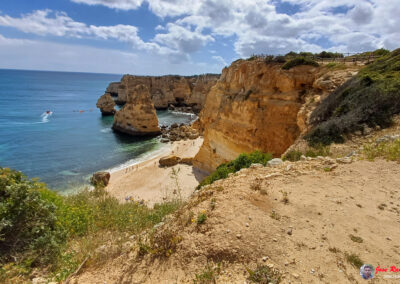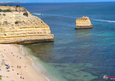 Praia da Marinha es famosa por sus espectaculares acantilados dorados que se elevan majestuosamente sobre el Atlántico, creando un paisaje de ensueño. Sus aguas azul turquesa y arenas doradas ofrecen un entorno perfecto para relajarse y disfrutar del sol. Además, la playa es un excelente lugar para practicar snorkel, ya que sus aguas claras permiten una excelente visibilidad para observar la vida marina.