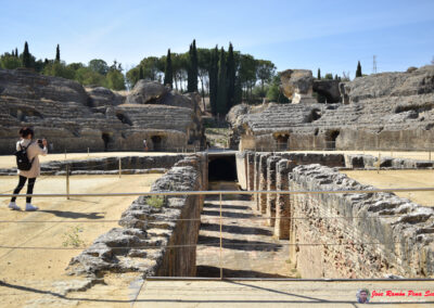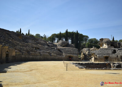 Al visitar Itálica, uno de los primeros lugares que capta la atención es el imponente anfiteatro, uno de los más grandes del antiguo imperio romano. Capaz de albergar hasta 25,000 espectadores, esta estructura nos habla del amor de los romanos por los espectáculos públicos y su avanzada ingeniería. Caminar por la arena del anfiteatro es retroceder en el tiempo, imaginando las luchas de gladiadores que una vez entretuvieron a masas de ciudadanos.