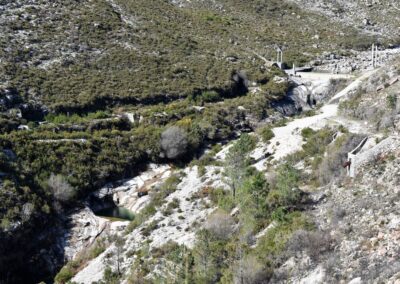 1. En la cabecera del río, donde comienzan las lagunas, hay una represa para captar el agua para una central hidroeléctrica que no está integrada en la naturaleza de la zona, al igual que la que mencione anteriormente.